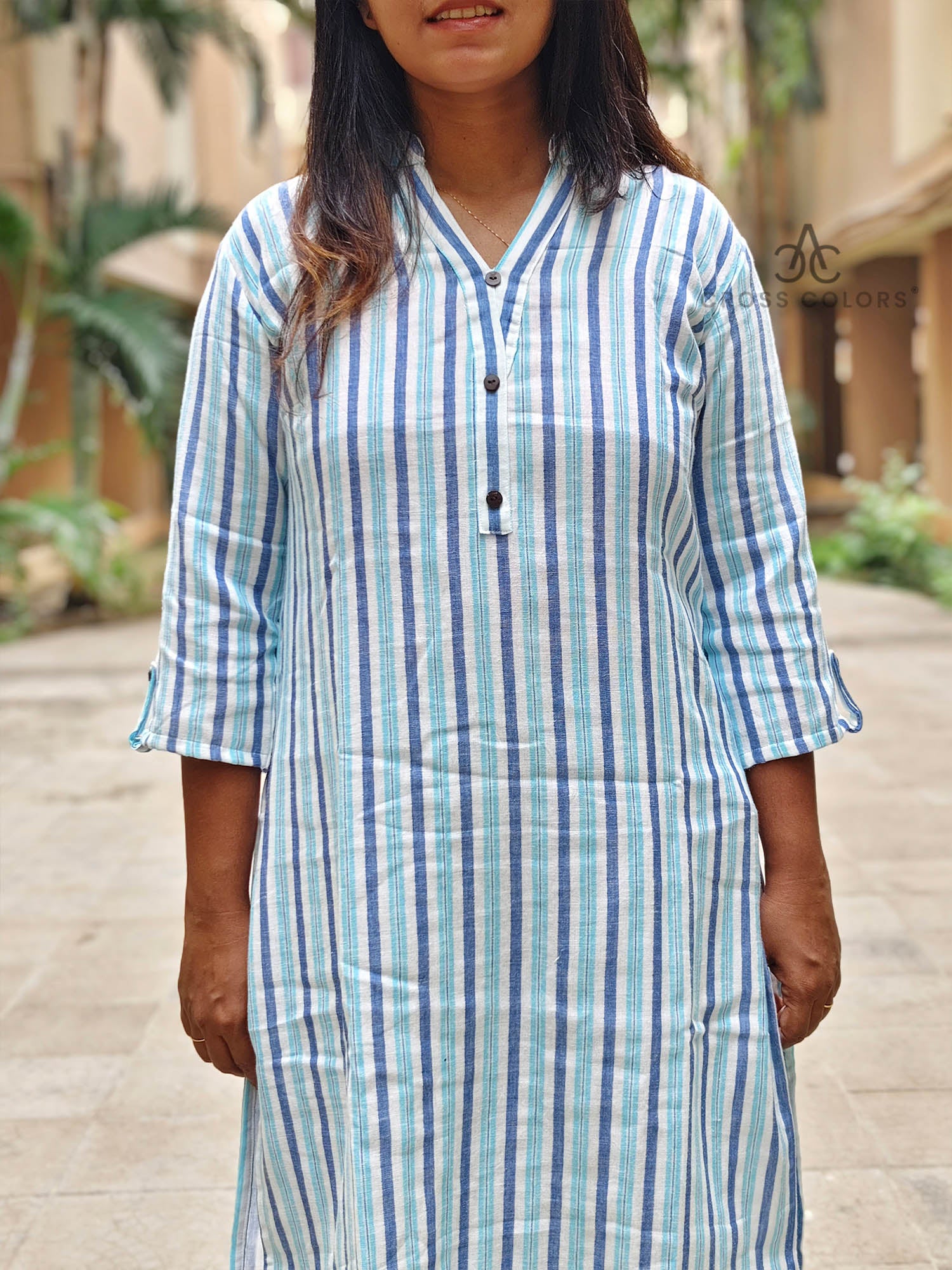 Chinese Collar Striped Kurti – Stylish 3/4 Sleeve Straight Fit for Everyday Elegance